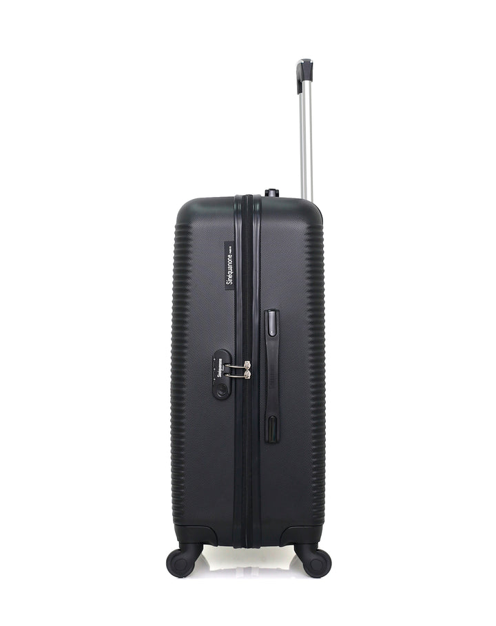 Einmal erhalten, wird der Koffer DEMETER, ein Modell im Gepäckraumformat, angeboten von der Marke SINEQUANONE, zweifelsfrei ein ausgezeichneter Gefährte für Ihre nächsten Ferien, egal, ob im Zug, im Flugzeug oder im Auto. Dieser Koffer im Mittelformat ist unbestreitbar wirklich unverzichtbar, um Ihre Koffersammlung zu ergänzen. In diesem Koffer der Marke SINEQUANONE können Sie Ihre gesamte Kleidung stressfrei einpacken, unabhängig davon, ob es sich um T-Shirt, Pyjama, Jackett oder Jogginghose handelt. Auch die Sicherheit kommt nicht zu kurz: Dieses Gepäckstück in Frachtraumgröße ist mit einem Codeschloss ausgestattet, um mögliche Einbrüche zu verhindern.
